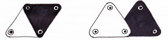Règle du Jeu. Ce jeu se joue à deux. L’un prend les pions rouges et l’autre les jaunes. Au début, chaque joueur pose un de ses pions à l’extrémité d’une des six lignes verticales qui divisent le jeu, les rouges en haut et les jaunes en bas du jeu. L’objectif de chaque joueur est de capturer tous les pions de son adversaire. Chaque joueur, à tour de rôle, fait avancer un de ses pions sur une des lignes verticales, horizontales ou diagonales sur lesquelles il est à cheval; tout pion peut, en patinant pour ainsi dire, avancer, reculer, aller à droite ou à gauche, jusqu’au bout de la ligne sur laquelle il s’engage, ou seulement jusqu’au croisement de lignes qui lui convient. Dans sa marche, si un pion rencontre un pion adverse, il le capture et continue sa route. Un pion ne peut jamais en prendre plus d’un en un seul coup. Les pions d’un même camp ne peuvent jamais passer les uns au-dessus des autres ; tous les pions peuvent revenir sur leurs pas et passer plusieurs fois au même point.